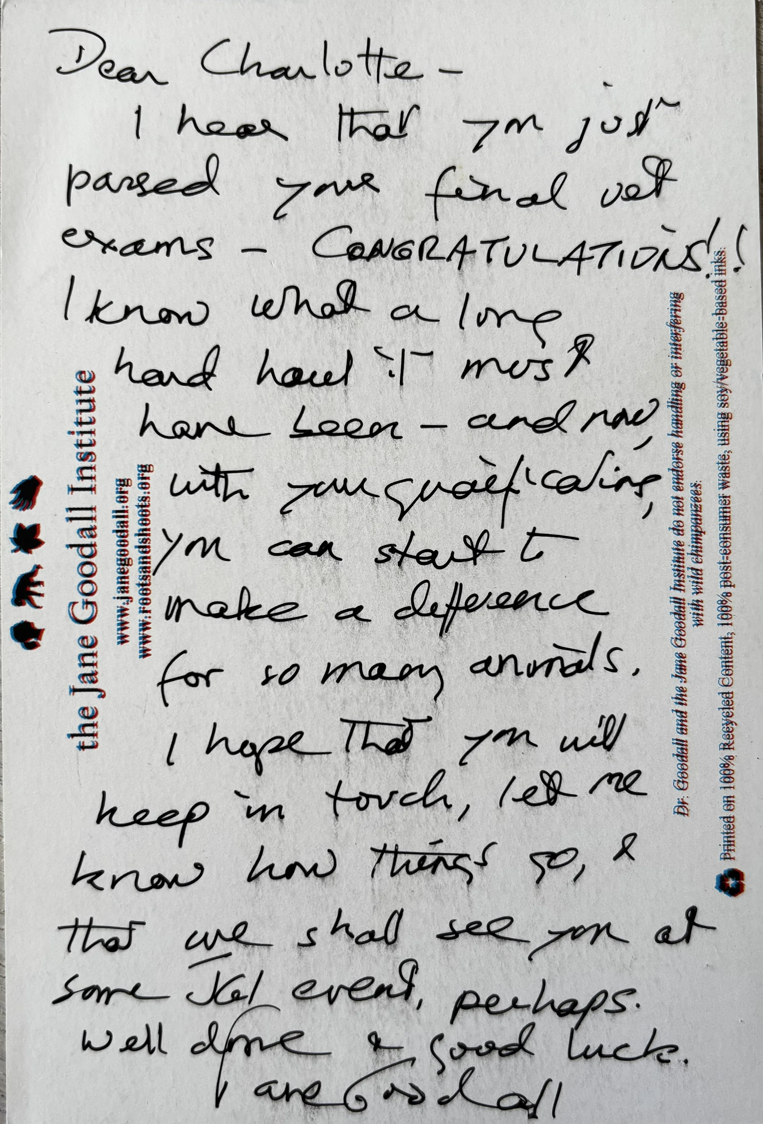 She wrote to me again in 2014 when I graduated, congratulating me and exclaiming how after all this hard work I can start to make a difference for animals.